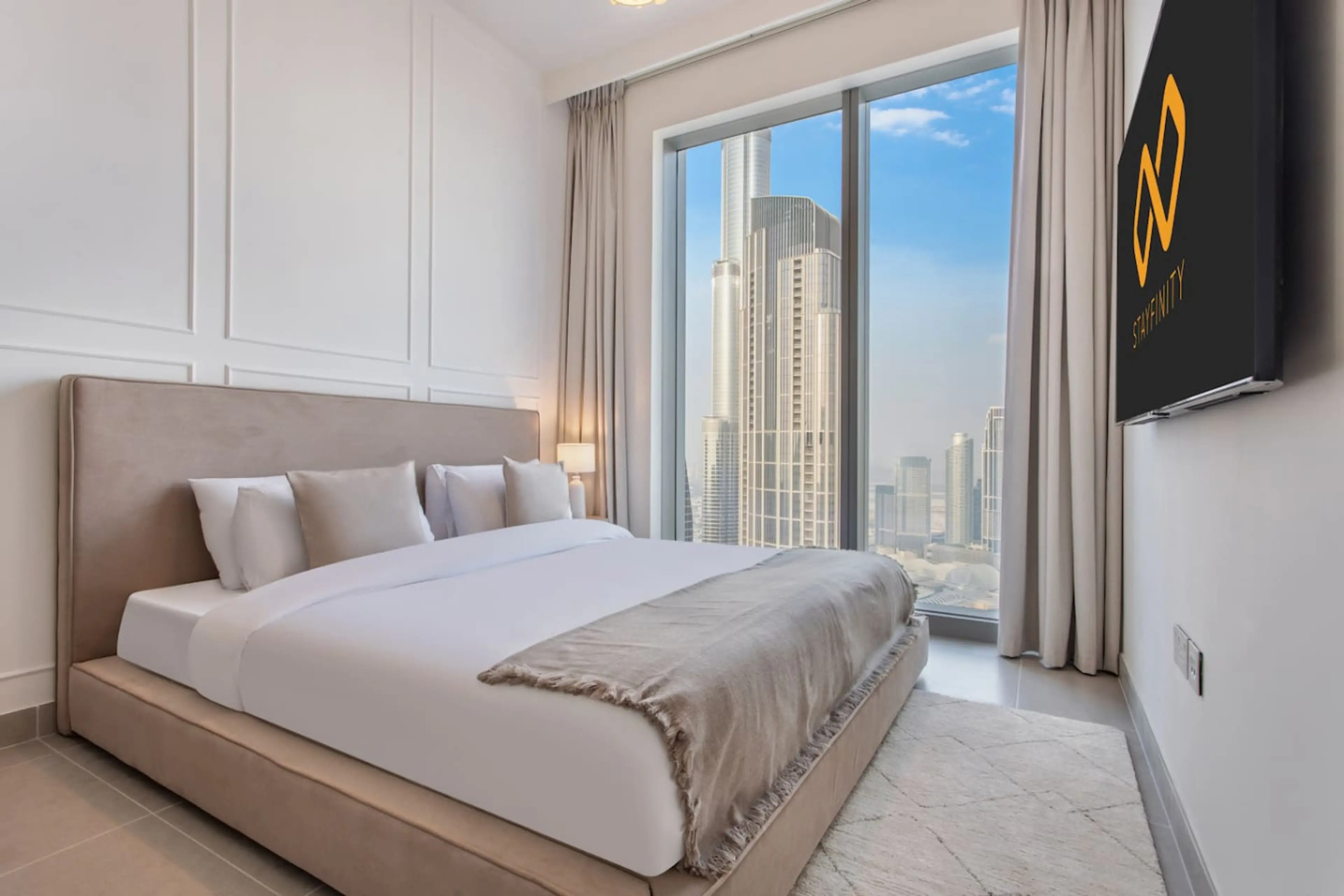 Welcome to your luxurious 65th-floor retreat in Dubai Downtown! ✔ 4 bedrooms accommodating up to 9 guests. ✔ Stunning views of Burj Khalifa and Dubai Fountain from your private balcony. ✔ Free access to pool, gym, and children's areas. ✔ Fully equipped kitchen and spacious living/dining area...