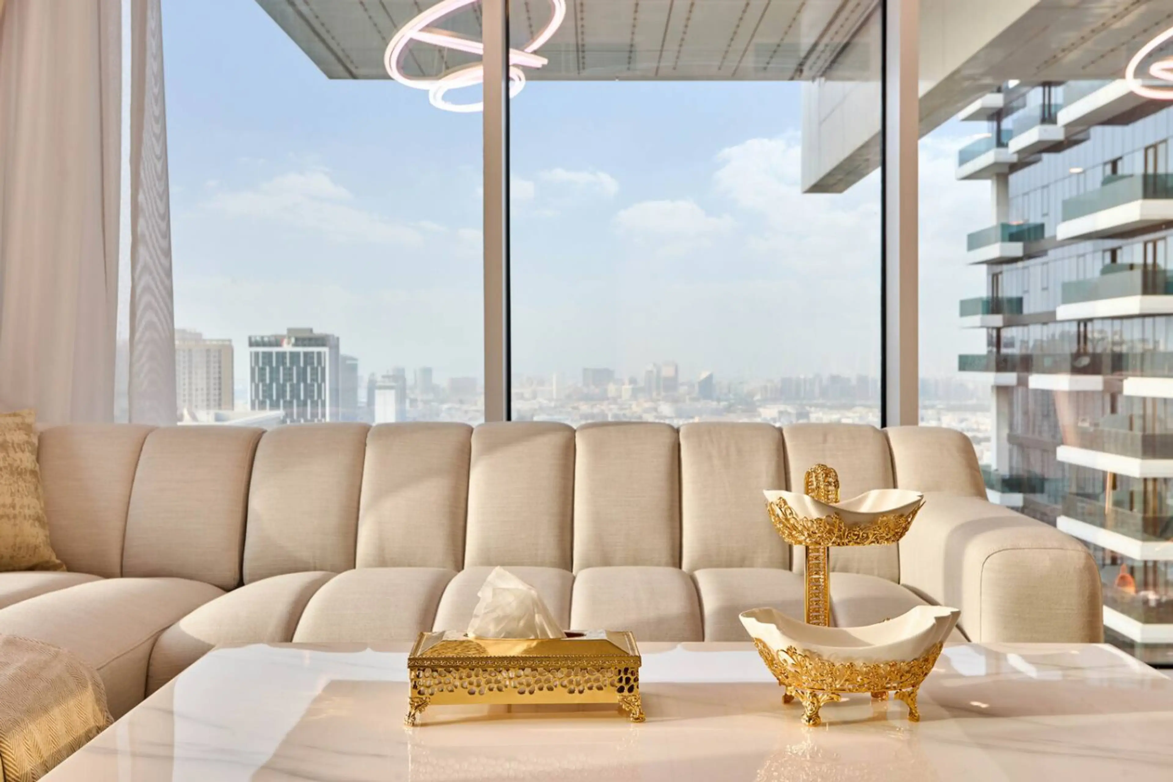 This elegant 2-bedroom apartment offers modern comfort and style with stunning views of the city skyline and Zabeel Park. Both bedrooms have ensuite bathrooms—one with a bathtub and shower, the other with a walk-in shower. There’s also a guest WC, a fully equipped kitchen with dishwasher, washing ma...
