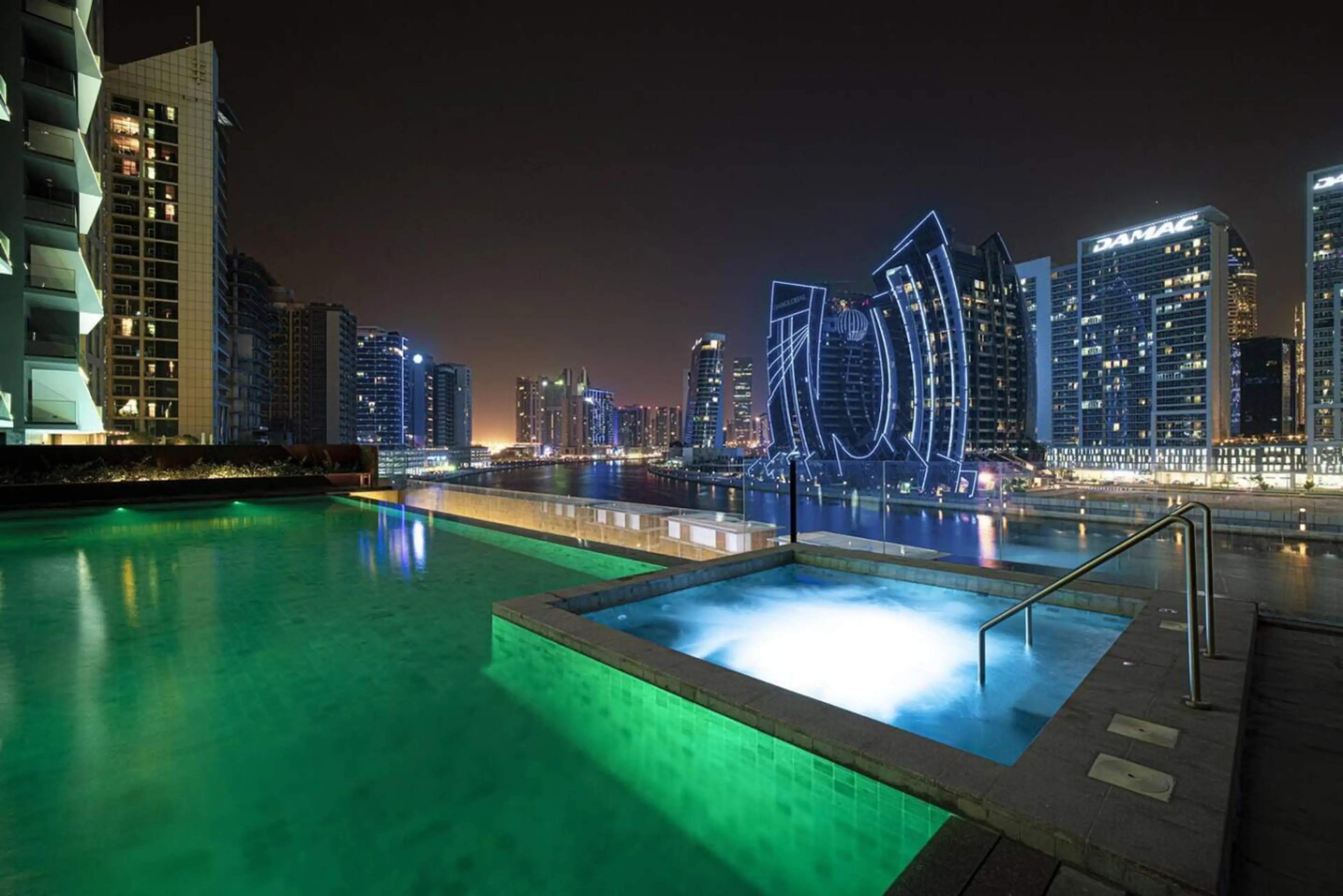 Modern studio in the stylish 15 Northside Tower, Business Bay. This fully equipped space features a comfortable bed, smart TV, fast Wi-Fi, a sleek kitchen with all essentials, and a washer. Enjoy building amenities like a gym, pool, and 24/7 security. Ideal for short or extended stays, with easy acc...