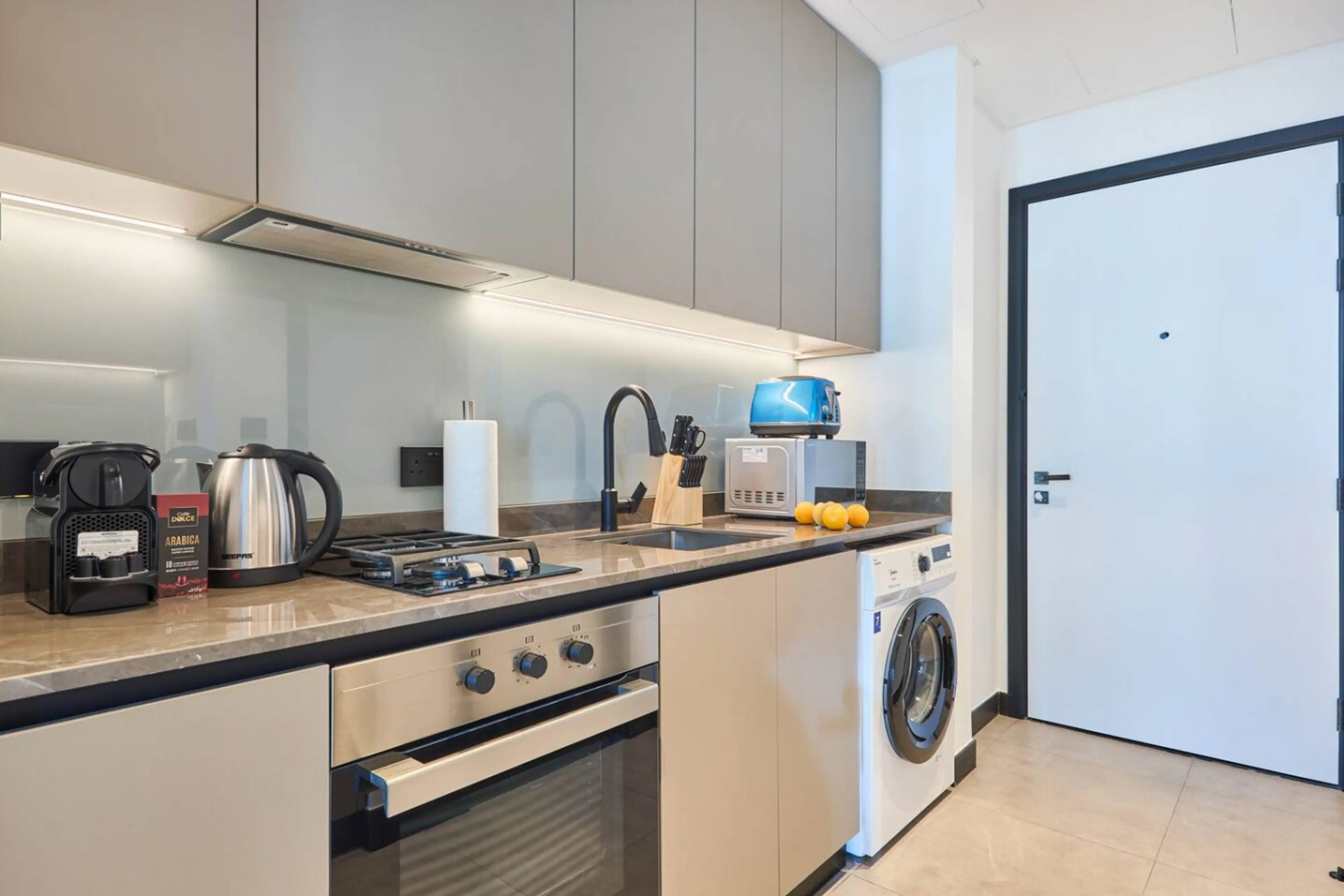 Experience modern living in this stylish studio at 15 Northside Tower, Business Bay. The apartment offers a cozy bed, Smart TV, high-speed Wi-Fi, a sleek fully equipped kitchen, and an in-unit washer for your convenience. Guests can enjoy premium building amenities, including a gym, pool, and 24/7 s...