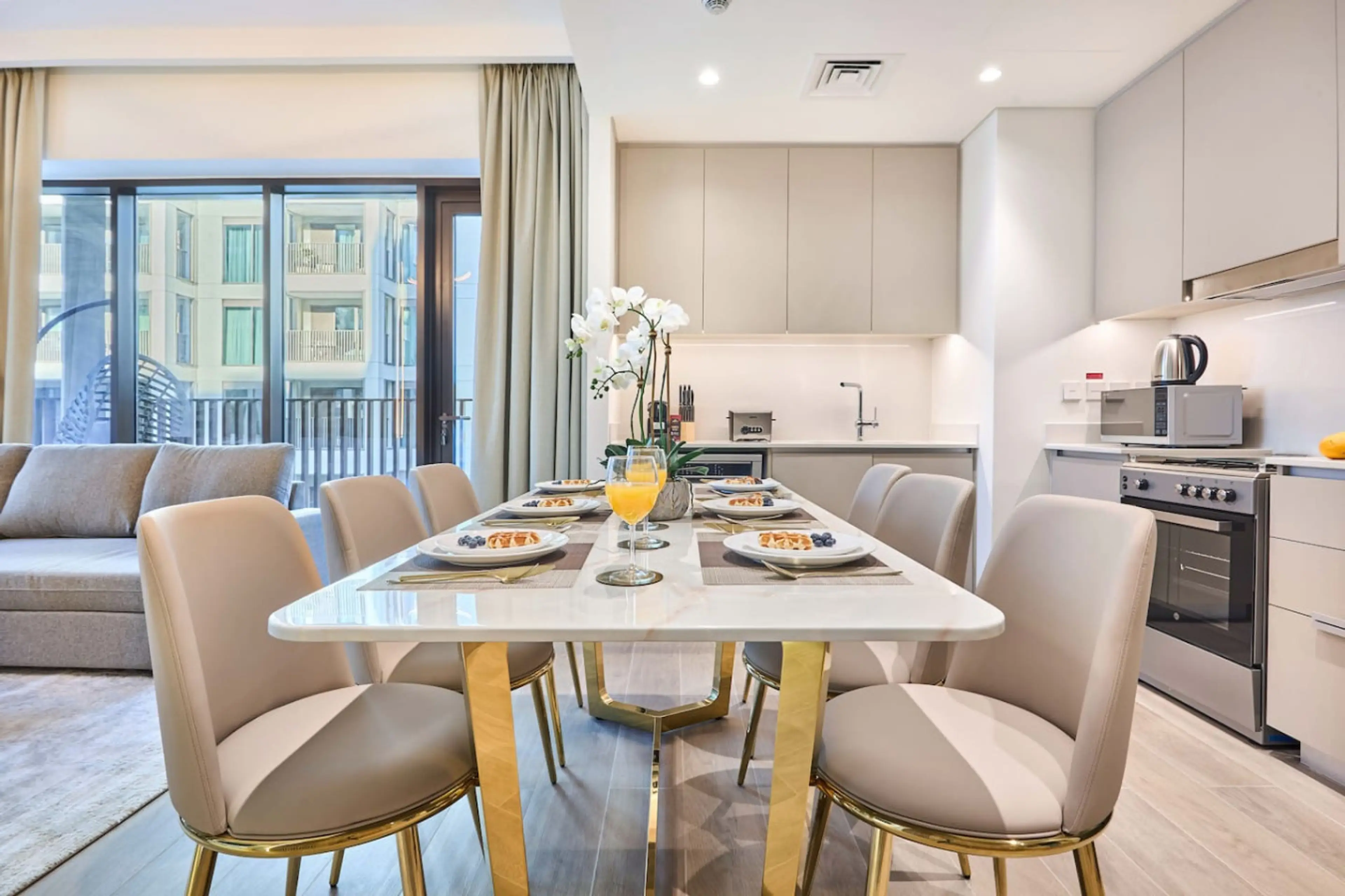 Have fun witRelax in this stylish 2-bedroom apartment at Grove 5, Creek Beach, located in the heart of Dubai Creek Harbour. Just steps from the beach, this modern home offers spacious interiors, a fully equipped kitchen, and a private balcony—perfect for unwinding after a day in the city. Guests en...