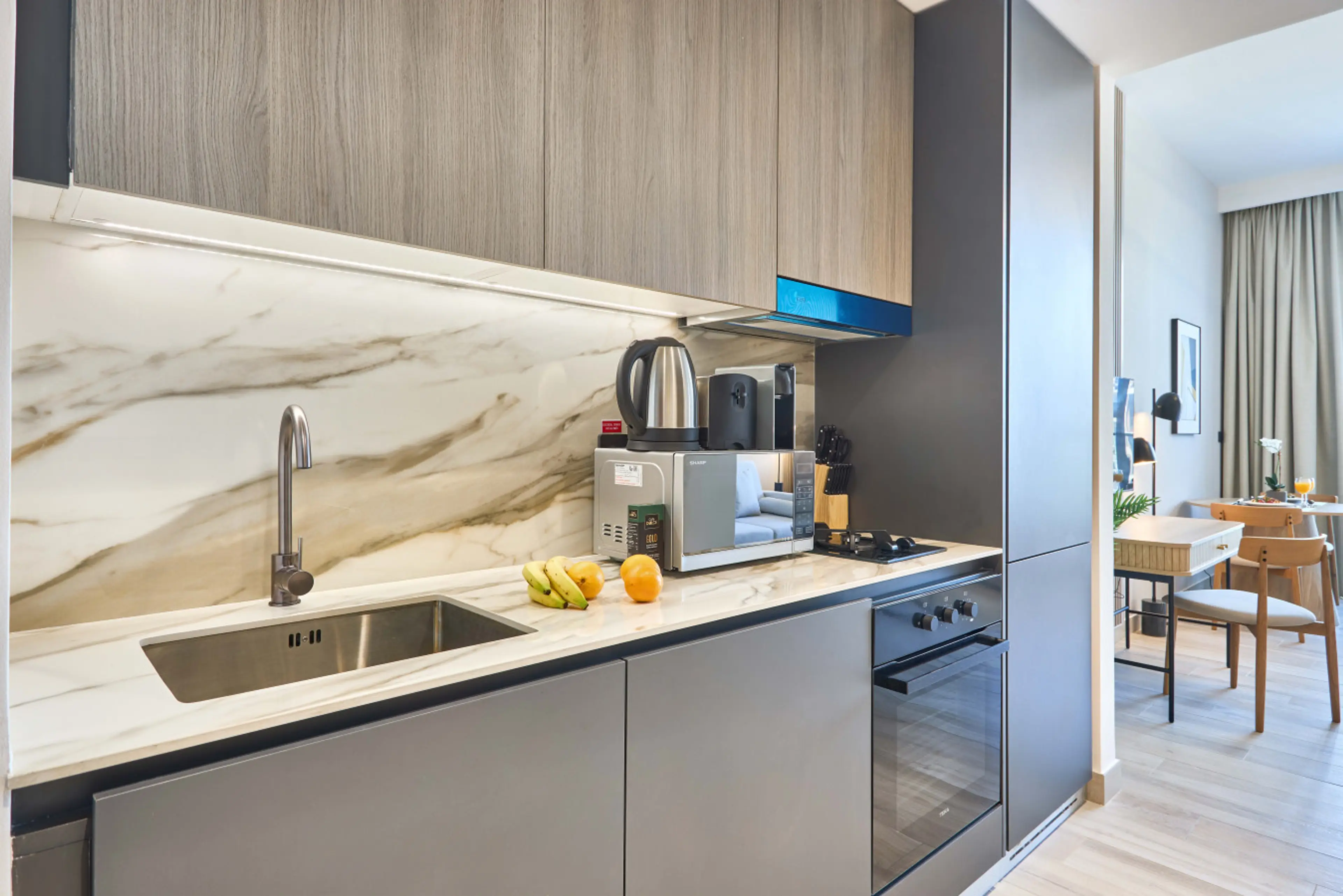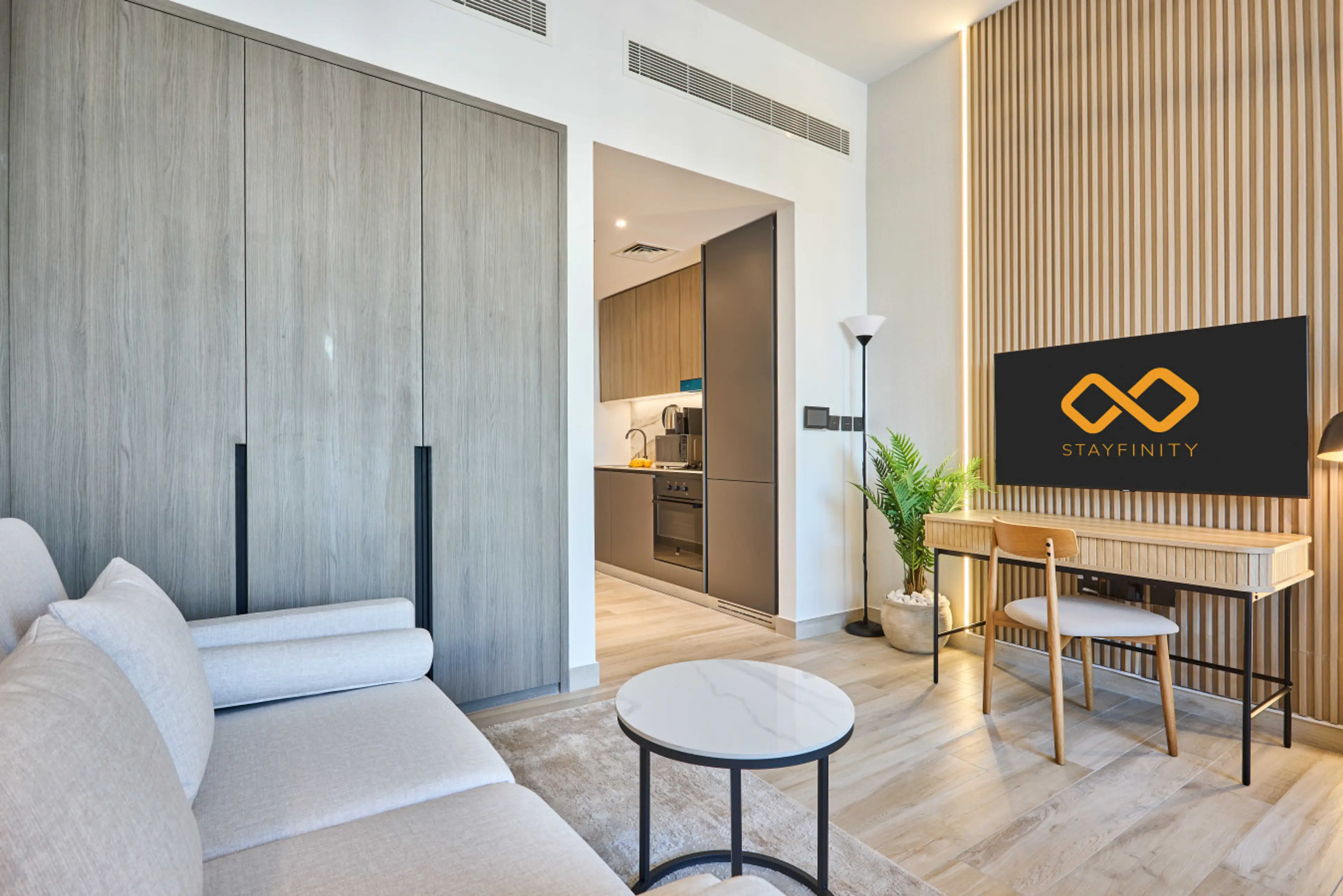 Make yourself at home in this thoughtfully designed studio at Oxford Gardens in Arjan. The bright open-plan space features a comfortable bed, a sofa bed, a sleek modern bathroom, and a fully equipped kitchen. Guests enjoy access to 2 swimming pools, a playground, padel court, rooftop BBQ area, a ful...